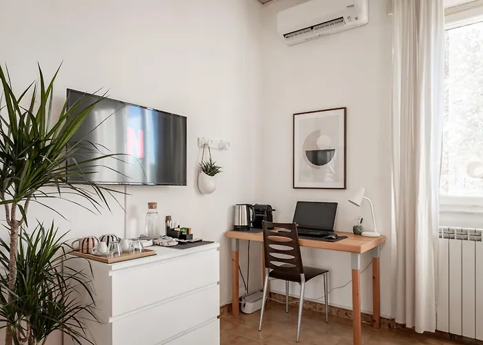 Oltre a un impianto di climatizzazione, Camera Privata Con Parcheggio Gratuito ha anche un televisore e una TV a schermo piatto con canali satellitari per un soggiorno più piacevole. La struttura è arredata e include uno scrittoio tra gli arredi. L'alloggio ha 1 camera da letto. Quest'appartamento include 1 bagno che include un bidet, un bagno alla francese e una doccia. Inoltre, ci sono asciugacapelli e asciugamani.
